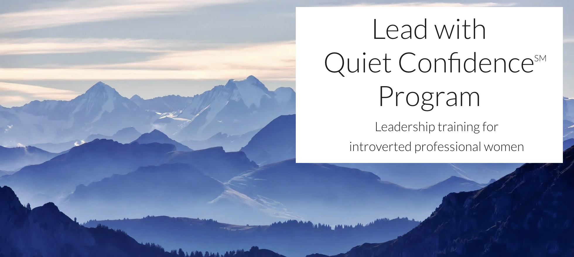 Join us in the Lead with Quiet Confidence Program to learn how to lead most effectively in your authentic, quiet self and increase your impact and career satisfaction. This program is designed to help you succeed as an introvert in an extroverted world.